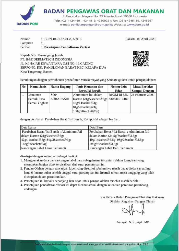 Sertifikat BPOM